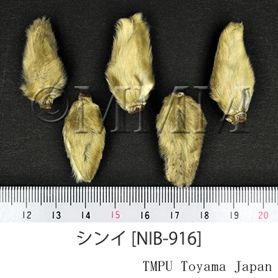 | 備考 | 中国産はモクレン科 Magnolia biondii Pamp.,モクレン M. liliflora Desr.,ハクモクレン M. denudata Desr. などの花蕾を乾燥したものであり,日本に輸入されている辛夷は M. biondii を基源とするものがほとんどである. 日本産はタムシバ M. salicifolia の花蕾を乾燥したものであるが,中国産のものに比べ柔毛が少なく,潤いに欠け品質は劣る.従来和産辛夷は コブシ M. kobus DC. であるとされてきたが,現在市場には見られない. | ||||