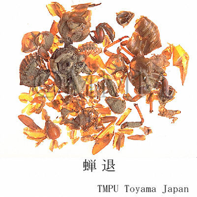 | 原植物名 | Cryptotympana atrata Stal1, Platylomia pieli Kato, Oncotympana maculaticollis Distant2, Tanna chekiangensis Ouchi, Graptopsaltria tienta Karsch, Lyristes pekinensis Haupt, Lyristes atrofasciatus Chou et Lei, Meimuna mongolica Distant3, Leptosemia sakaii Matsumura4, Platypleura kaempferi Butler5, またはそれらの同属動物 (スジアカクマゼミ1, ミンミンゼミ2, コマゼミ3, ホソヒグラシ4, ニイニイゼミ5) | |||||