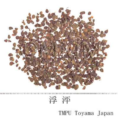 | 備考 | 香港市場の広東,広西省産の大型の「浮萍」はサトイモ科のボタンウキクサ Pistia stratiotes L. の全草を乾燥したもの.浮萍草とも称す. 北方系の小型の浮萍中にはウキクサ以外にアオウキクサ属のコウキクサ Lemna minor L. および L. paucicostata Hegelmaier が混入されるといわれているが,木村らの調査によるとウキクサただ1種である. また,石戸谷によると朝鮮半島産の浮萍には デンジソウ科のデンジソウ Marsilia quadrifolia L. がある | |||||