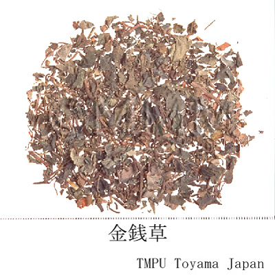 | 備考 | 現在日本で入手できる商品は香港市場品である. 中国南部諸省で胆石症や尿石症の特効薬と称して市販されている.その他,タデ科/Polygonaceae の ミズヒキ Polygonum filiforme Thunb. = P. virginianum L. var. filiforme (Thunb.) Merr.; Tovara filiformis (Thunb.) Nakai; T. virginiana (L.) Rafin. var. filiformis (Thunb.) Steward; Sunania filiformis (Thunb.) Rafin. の全草,サクラソウ科/Primulaceae の Lysimachia christinae Hance. の全草など多種の植物が金銭草と称される. | |||||