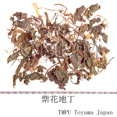| 備考 | 地丁の基源植物として以下のものが知られている. 1) 紫花地丁,薫菜地丁,犂頭草: スミレ科/Violaceae の スミレ Viola mandshurica W. Becker, コスミレ V. japonica Langsd., ノジスミレ V. yedoensis Makino, ニョイスミレ V. verecunda A. Gray, ツクシスミレ V. diffusa Gingins, シロスミレ V. patrinii DC. などスミレ Viola属植物の全草を乾燥したもの.1種類のみの商品もあり,また2~3種が混入されているものもある. 2) 甜地丁,米口袋地丁: マメ科/Leguminosae イヌゲンゲ Amblytropis multiflora (Bunge) Kitagawa の根あるいは根をつけた全草を乾燥したもの.江蘇省では地丁草,山東省では労鼠尾根と称す. 3) 苦地丁,紫薫地丁: ケシ科/Papaveraceaeの Corydalis bungeana Turcz. の全草を乾燥したもの.天津では紫花地丁,河北省では苦丁花と称する. 4) 華南地丁,龍胆地丁: リンドウ科/Gentianaceae の Gentiana loureirii Griseb. の全草を乾燥したもの. 5) 竹葉地丁: ヒメハギ科/Polygalaceae の ヒメハギ Polygala japonica Houtt. の全草を乾燥したもの. 以上が中国大陸で一般に市販されているものであるが,香港市場には1), 4), 5)が出まわっている.また韓国産の紫地丁と称するものは, 6) ノボタン科/Melastomataceae の ヒメボタン Osbeckia chinensis L. の全草を乾燥したものである. | |||||