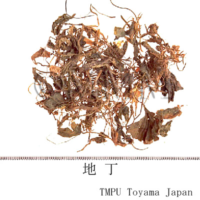 | 備考 | 地丁の基源植物として以下のものが知られている. 1) 紫花地丁,薫菜地丁,犂頭草: スミレ科/Violaceae の スミレ Viola mandshurica W. Becker, コスミレ V. japonica Langsd., ノジスミレ V. yedoensis Makino, ニョイスミレ V. verecunda A. Gray, ツクシスミレ V. diffusa Gingins, シロスミレ V. patrinii DC. などスミレ Viola属植物の全草を乾燥したもの.1種類のみの商品もあり,また2~3種が混入されているものもある. 2) 甜地丁,米口袋地丁: マメ科/Leguminosae イヌゲンゲ Amblytropis multiflora (Bunge) Kitagawa の根あるいは根をつけた全草を乾燥したもの.江蘇省では地丁草,山東省では労鼠尾根と称す. 3) 苦地丁,紫薫地丁: ケシ科/Papaveraceaeの Corydalis bungeana Turcz. の全草を乾燥したもの.天津では紫花地丁,河北省では苦丁花と称する. 4) 華南地丁,龍胆地丁: リンドウ科/Gentianaceae の Gentiana loureirii Griseb. の全草を乾燥したもの. 5) 竹葉地丁: ヒメハギ科/Polygalaceae の ヒメハギ Polygala japonica Houtt. の全草を乾燥したもの. 以上が中国大陸で一般に市販されているものであるが,香港市場には1), 4), 5)が出まわっている.また韓国産の紫地丁と称するものは, 6) ノボタン科/Melastomataceae の ヒメボタン Osbeckia chinensis L. の全草を乾燥したものである. | |||||