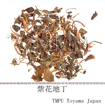 | 備考 | 地丁の基源植物として以下のものが知られている. 1) 紫花地丁,薫菜地丁,犂頭草: スミレ科/Violaceae の スミレ Viola mandshurica W. Becker, コスミレ V. japonica Langsd., ノジスミレ V. yedoensis Makino, ニョイスミレ V. verecunda A. Gray, ツクシスミレ V. diffusa Gingins, シロスミレ V. patrinii DC. などスミレ Viola属植物の全草を乾燥したもの.1種類のみの商品もあり,また2~3種が混入されているものもある. 2) 甜地丁,米口袋地丁: マメ科/Leguminosae イヌゲンゲ Amblytropis multiflora (Bunge) Kitagawa の根あるいは根をつけた全草を乾燥したもの.江蘇省では地丁草,山東省では労鼠尾根と称す. 3) 苦地丁,紫薫地丁: ケシ科/Papaveraceaeの Corydalis bungeana Turcz. の全草を乾燥したもの.天津では紫花地丁,河北省では苦丁花と称する. 4) 華南地丁,龍胆地丁: リンドウ科/Gentianaceae の Gentiana loureirii Griseb. の全草を乾燥したもの. 5) 竹葉地丁: ヒメハギ科/Polygalaceae の ヒメハギ Polygala japonica Houtt. の全草を乾燥したもの. 以上が中国大陸で一般に市販されているものであるが,香港市場には1), 4), 5)が出まわっている.また韓国産の紫地丁と称するものは, 6) ノボタン科/Melastomataceae の ヒメボタン Osbeckia chinensis L. の全草を乾燥したものである. | |||||