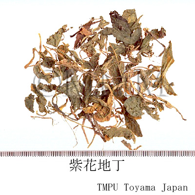 | 備考 | 地丁の基源植物として以下のものが知られている. 1) 紫花地丁,薫菜地丁,犂頭草: スミレ科/Violaceae の スミレ Viola mandshurica W. Becker, コスミレ V. japonica Langsd., ノジスミレ V. yedoensis Makino, ニョイスミレ V. verecunda A. Gray, ツクシスミレ V. diffusa Gingins, シロスミレ V. patrinii DC. などスミレ Viola属植物の全草を乾燥したもの.1種類のみの商品もあり,また2~3種が混入されているものもある. 2) 甜地丁,米口袋地丁: マメ科/Leguminosae イヌゲンゲ Amblytropis multiflora (Bunge) Kitagawa の根あるいは根をつけた全草を乾燥したもの.江蘇省では地丁草,山東省では労鼠尾根と称す. 3) 苦地丁,紫薫地丁: ケシ科/Papaveraceaeの Corydalis bungeana Turcz. の全草を乾燥したもの.天津では紫花地丁,河北省では苦丁花と称する. 4) 華南地丁,龍胆地丁: リンドウ科/Gentianaceae の Gentiana loureirii Griseb. の全草を乾燥したもの. 5) 竹葉地丁: ヒメハギ科/Polygalaceae の ヒメハギ Polygala japonica Houtt. の全草を乾燥したもの. 以上が中国大陸で一般に市販されているものであるが,香港市場には1), 4), 5)が出まわっている.また韓国産の紫地丁と称するものは, 6) ノボタン科/Melastomataceae の ヒメボタン Osbeckia chinensis L. の全草を乾燥したものである. | |||||