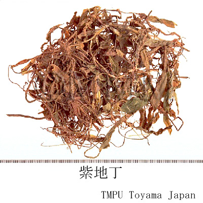 | 備考 | 地丁の基源植物として以下のものが知られている. 1) 紫花地丁,薫菜地丁,犂頭草: スミレ科/Violaceae の スミレ Viola mandshurica W. Becker, コスミレ V. japonica Langsd., ノジスミレ V. yedoensis Makino, ニョイスミレ V. verecunda A. Gray, ツクシスミレ V. diffusa Gingins, シロスミレ V. patrinii DC. などスミレ Viola属植物の全草を乾燥したもの.1種類のみの商品もあり,また2~3種が混入されているものもある. 2) 甜地丁,米口袋地丁: マメ科/Leguminosae イヌゲンゲ Amblytropis multiflora (Bunge) Kitagawa の根あるいは根をつけた全草を乾燥したもの.江蘇省では地丁草,山東省では労鼠尾根と称す. 3) 苦地丁,紫薫地丁: ケシ科/Papaveraceaeの Corydalis bungeana Turcz. の全草を乾燥したもの.天津では紫花地丁,河北省では苦丁花と称する. 4) 華南地丁,龍胆地丁: リンドウ科/Gentianaceae の Gentiana loureirii Griseb. の全草を乾燥したもの. 5) 竹葉地丁: ヒメハギ科/Polygalaceae の ヒメハギ Polygala japonica Houtt. の全草を乾燥したもの. 以上が中国大陸で一般に市販されているものであるが,香港市場には1), 4), 5)が出まわっている.また韓国産の紫地丁と称するものは, 6) ノボタン科/Melastomataceae の ヒメボタン Osbeckia chinensis L. の全草を乾燥したものである. | |||||