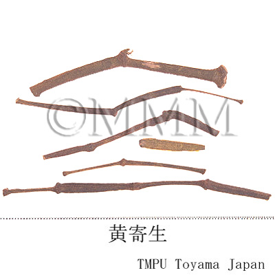 | 備考 | 本品はヤドリギ Viscum album L. var. coloratum (Komar.) Ohwi [=V. coloratum (Komar.) Nakai, V. album L. subsp. coloratum Komar.] および アカミヤドリギ V. album L. var. coloratum Ohwi forma rubro-aurantiacum (Makino) Ohwi の葉をつけた茎を乾燥したもの.市場では桑寄生,槲寄生,柳寄生,北寄生,黄寄生と呼ぶ. また Loranthus parasiticus (L.) Merr. (= Scurrula parasitica L.) の帯葉茎 (広寄生), オオバヤドリギ Loranthus yadoriki Sieb. ex Maxim. [= Taxillus yadoriki (Sieb.) Danser] の帯葉茎 (四川省で桑寄生,寄生苞,寄生子,柿寄生と称する) なども「桑寄生」として市販される.一般に北寄生 (東北, 華北) と広寄生 (華南) が多い.台湾市場の槲寄生はオオバヤドリギ Loranthus yadoriki, 広寄生は Viscum articulatum Burm. を基源としている. | |||||