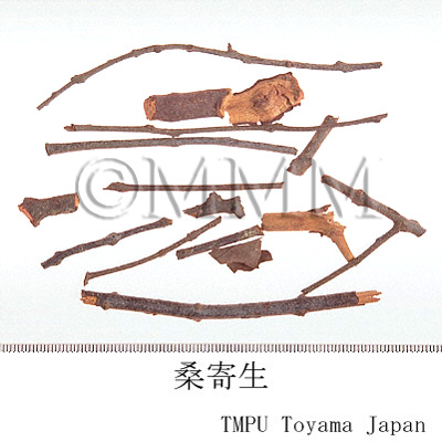 | 備考 | 本品はヤドリギ Viscum album L. var. coloratum (Komar.) Ohwi [=V. coloratum (Komar.) Nakai, V. album L. subsp. coloratum Komar.] および アカミヤドリギ V. album L. var. coloratum Ohwi forma rubro-aurantiacum (Makino) Ohwi の葉をつけた茎を乾燥したもの.市場では桑寄生,槲寄生,柳寄生,北寄生,黄寄生と呼ぶ. また Loranthus parasiticus (L.) Merr. (= Scurrula parasitica L.) の帯葉茎 (広寄生), オオバヤドリギ Loranthus yadoriki Sieb. ex Maxim. [= Taxillus yadoriki (Sieb.) Danser] の帯葉茎 (四川省で桑寄生,寄生苞,寄生子,柿寄生と称する) なども「桑寄生」として市販される.一般に北寄生 (東北, 華北) と広寄生 (華南) が多い.台湾市場の槲寄生はオオバヤドリギ Loranthus yadoriki, 広寄生は Viscum articulatum Burm. を基源としている. | |||||