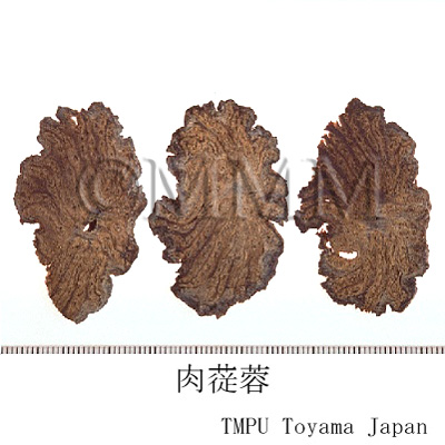別名を 「大芸」 といい,春季採集したものを砂中に半分埋め,晒干したものを 「甜大芸(淡大芸)」 と称し,秋季採集したものは水分が多く乾燥し難いので塩湖中に1~3年漬けておき,これを 「塩大芸」 と称する.薬用にする際には塩分を洗い去る.現在わが国に輸入される肉蓯蓉は 「淡大芸」 の方である.