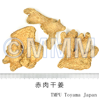 備考古来,漢方処方で用いられる生姜は,いわゆる新鮮なショウガのことで,乾姜は乾燥品である.したがって,漢薬市場の乾燥した生姜(乾生姜とも称す)は,漢方でいう乾姜を指す.では市場の乾姜は何かというと,生姜を蒸乾したもので,修治品(加工品)といえる.一方,現在中国では新鮮なものが生姜で,乾燥品が乾姜である.また修治品として炮姜がある.炮姜は先ずきれいな砂(蛤粉,滑石粉)を鍋に入れ,強火で熱した後,乾燥した皮付き生姜を入れて攪拌し,表面が盛り上がって褐色になったら取出し放冷したものである.
