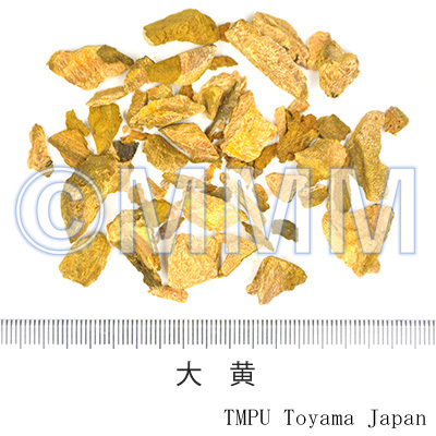 | 臨床応用 | 緩下,健胃,駆瘀血薬.漢方では実証タイプの結毒を排除し,通利を促し,宿食,便秘による腹痛,化膿性腫脹を治す要薬である. | ||||||