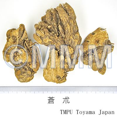 備考茅朮(毛朮,漢蒼朮)は A. lancea ホソバオケラ(湖北,江西,江蘇省などに産す),津蒼朮(山蒼朮)は A. chinensis シナオケラ(河北,河南,山西省に産す),北鮮蒼朮は A. koreana Kitam. (= A. lancea DC. var. simplicifolia Kitam.) ナンマンオケラ(吉林,遼寧省,朝鮮半島北部に産す),韓蒼朮は A. japonica Koidz. オケラ(中国東北地方,朝鮮半島,日本に産す)である.江蘇省茅山産の茅朮は品質のよいものとして特に有名である.精油成分が蒼朮の表面に,白色の綿状に析出し,カビと見誤ることが多いが,beta-Eudesmol と Hinesol の混晶であり,良質のものである証拠である.