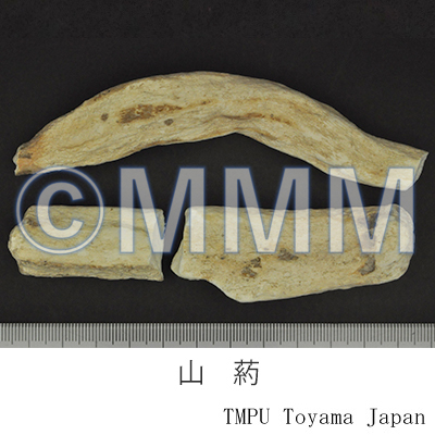 | 備考 | 日局18には ヤマノイモ Dioscorea japonica と ナガイモ D. batatas が,『中華人民共和国薬典 2020年版』には D. opposita がそれぞれ規定される.河南省の山薬は「淮山薬」,「淮山」と称され,D. opposita に由来し,一方広西壮族自治区の山薬は ダイジョ D. alata L. に由来する. 日本産の山薬は食用として栽培されたナガイモを原料とする.ナガイモは食用として広く栽培され,多数の品種がある.品種はナガイモ群,イチョウイモ群,丹波イモ群に大別される.ヤマノイモとの中間型もある. 台湾産の山薬は D. alata L. や D. doryphora Hance,その他偽品としてヒルガオ科 (Convolvulaceae)の アメリカイモ Ipomoea batatas (L.) Poir の塊根がある. 日本産と中国産では加工方法にも違いがあり,日本産は皮を剥いだ後そのまま加熱乾燥するが,中国産は圧縮して水分をある程度除去して乾燥する(毛条山薬)かまたはチョーク状に加工する(光山薬).日本産の品質が良いとされる. | ||||||