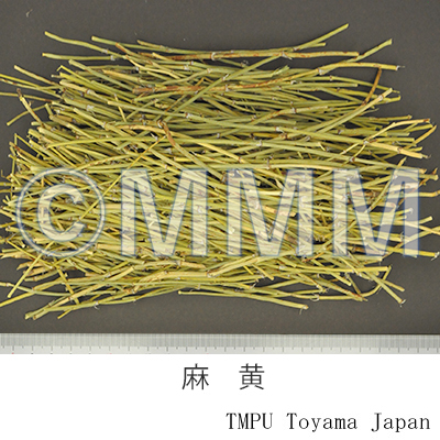 | 薬理作用 | 鎮咳,抗アレルギー作用(水,エタノールエキス),交感神経興奮(血圧上昇,気管支拡張,散瞳,発汗),中枢性鎮咳作用(ephedrine),抗炎症作用(pseudoephedrine). | |||||