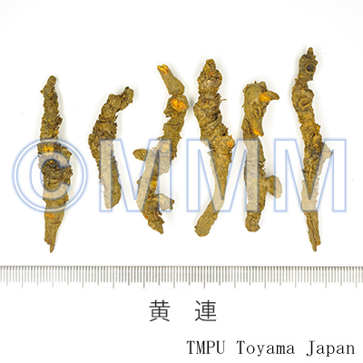| 選品 | 太くて堅実で,内部が濃黄色を呈し,苦味の強いものが良品.毛黄連はひげ根で苦味が少なく劣品(TN). | ||||||