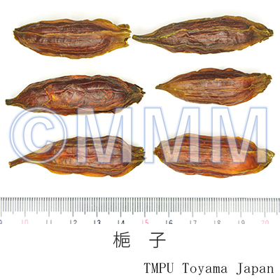 | 一般生薬名 | 山梔子, Shanzhizi, Zhizi, Gardeniae Fructus (JP18), (CP2020), Gardenia Fruit (JP18), Cape Jasmine Fruit (CP2020) | |||||