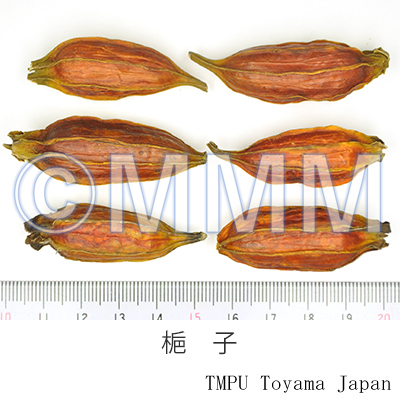 | 一般生薬名 | 山梔子, Shanzhizi, Zhizi, Gardeniae Fructus (JP18), (CP2020), Gardenia Fruit (JP18), Cape Jasmine Fruit (CP2020) | |||||