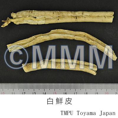 備考北蘚皮とも称する。湖北省嚢陽,京山,江蘇省淮陰,安徽省じょ県などの地区では,根皮でなく根部を薬用にしており,古蘚皮とも称している.新彊省で用いられている白蘚皮は Dictamnus angustifolius G. Don の根皮である.また,陜西,四川,湖南省では,マメ科/ Leguminosae のムレスズメ Caragana chamlagu Lam. の根皮を白蘚皮と称している.その他,河南省で用いられる白蘚皮は,現在のところ原植物不明である.