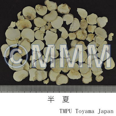 備考半夏は加工(修治)して用いられることがあり,加工品には法半夏,姜半夏などがある.法半夏は甘草と生石灰,姜半夏は生姜と明礬をそれぞれ用いて加工する.法半夏は燥湿,化痰,姜半夏は降逆止嘔に多用される.中国産の半夏市場品中にまれに Pinellia pedatisecta Schott,P. tripartita Schott オオハンゲまたはテンナンショウ属 Arisaema spp. の塊茎が混入される.水半夏は Typhonium sp. の塊茎である.