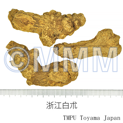 備考日本及び韓国産は Atractylodes japonica の根茎の周皮を除いたもので,「三好白朮」,「玉白朮」,「嫩根白朮」などと称する.中国産白朮はすべて Atractylodes macrocephala を基源とし,産地及び加工法の違いにより「浙朮」,「天生朮」,「冬朮」,「野朮」など多様な呼称がある.『中華人民共和国薬典』に規定される白朮 (Atractylodis Macrocephalae Rhizoma, Largehead Atractylodes Rhizome) はこのものである.日本産白朮を「和白朮」,中国産白朮を「唐白朮」ともいう.2種ともに精油の主成分は atractylone である.