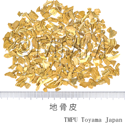 | 備考 | 市場では産地によって商品規格が定められている. (1) 南骨皮(杜骨皮):江蘇省蘇州~上海近郊産,品質良好. (2) 江北骨皮:江蘇省北部産,品質次品. (3) 古城骨皮:安徽省除県産,品質やや劣る. (4) 津骨皮:山西,河北,河南省産,劣品. クコの果実「枸杞子」は補腎薬,根皮「地骨皮」は清熱薬であり,効能が異なる. | |||||
