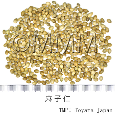 | 一般生薬名 | 麻子仁, Maziren, Cannabis Fructus (JP18, CP2020), Hemp Fruit (JP18), Hemp Seed (CP2020) | |||||