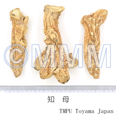 | 成分情報 | ステロイドサポニン及びサポゲニン Steroid saponins & Sapogenins (*C1): Timosaponin A-I, Timosaponin A-II, Timosaponin A-III, Timosaponin A-IV, Timosaponin B-I, Timosaponin B-II, Sarsasapogenin, Markogenin, Neogitogenin キサントン類 Xanthones (*C1): Mangiferin, Isomangiferin アミノ酸 Amino acids (*C1): Pantothenic acid ピリジンアルカロイド Pyridine alkaloids (*C1): Nicotinic acid | |||||