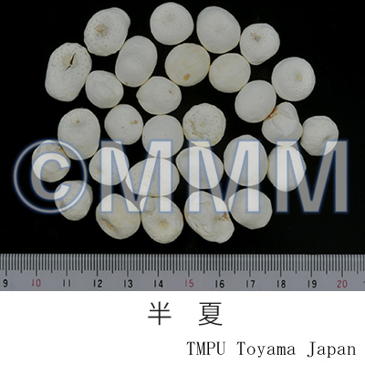 備考半夏は加工(修治)して用いられることがあり,加工品には法半夏,姜半夏などがある.法半夏は甘草と生石灰,姜半夏は生姜と明礬をそれぞれ用いて加工する.法半夏は燥湿,化痰,姜半夏は降逆止嘔に多用される.中国産の半夏市場品中にまれに Pinellia pedatisecta Schott,P. tripartita Schott オオハンゲまたはテンナンショウ属 Arisaema spp. の塊茎が混入される.水半夏は Typhonium sp. の塊茎である.