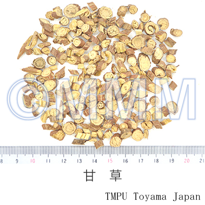 - 漢方処方で最も汎用される生薬.甘草エキスは煙草,醤油などの矯味料としての需要も多い.