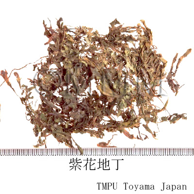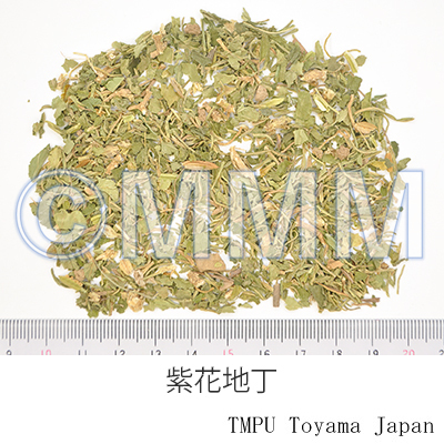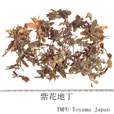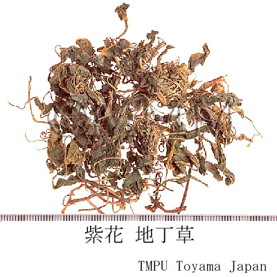 | 備考 | 地丁の基源植物として以下のものが知られている. 1) 紫花地丁,薫菜地丁,犂頭草: スミレ科/Violaceae の スミレ Viola mandshurica W. Becker, コスミレ V. japonica Langsd., ノジスミレ V. yedoensis Makino, ニョイスミレ V. verecunda A. Gray, ツクシスミレ V. diffusa Gingins, シロスミレ V. patrinii DC. などスミレ Viola属植物の全草を乾燥したもの.1種類のみの商品もあり,また2~3種が混入されているものもある. 2) 甜地丁,米口袋地丁: マメ科/Leguminosae イヌゲンゲ Amblytropis multiflora (Bunge) Kitagawa の根あるいは根をつけた全草を乾燥したもの.江蘇省では地丁草,山東省では労鼠尾根と称す. 3) 苦地丁,紫薫地丁: ケシ科/Papaveraceaeの Corydalis bungeana Turcz. の全草を乾燥したもの.天津では紫花地丁,河北省では苦丁花と称する. 4) 華南地丁,龍胆地丁: リンドウ科/Gentianaceae の Gentiana loureirii Griseb. の全草を乾燥したもの. 5) 竹葉地丁: ヒメハギ科/Polygalaceae の ヒメハギ Polygala japonica Houtt. の全草を乾燥したもの. 以上が中国大陸で一般に市販されているものであるが,香港市場には1), 4), 5)が出まわっている.また韓国産の紫地丁と称するものは, 6) ノボタン科/Melastomataceae の ヒメボタン Osbeckia chinensis L. の全草を乾燥したものである. | |||||