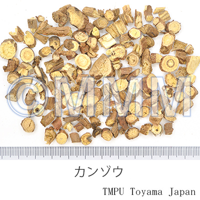 - 漢方処方で最も汎用される生薬.甘草エキスは煙草,醤油などの矯味料としての需要も多い.