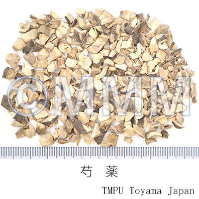 薬理作用抗炎症,血圧降下,鎮静(paeoniflorin).ストレス性潰瘍抑制.抗痙攣,実験的空間認知障害改善(水エキス,paeoniflorin).中枢性抗痙攣作用(paeoniflorin,paeonimetabolinⅠ).抗菌(Staphylococcus aureus 他).