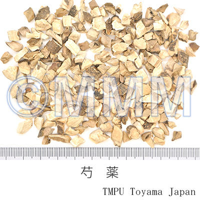 薬理作用抗炎症,血圧降下,鎮静(paeoniflorin).ストレス性潰瘍抑制.抗痙攣,実験的空間認知障害改善(水エキス,paeoniflorin).中枢性抗痙攣作用(paeoniflorin,paeonimetabolinⅠ).抗菌(Staphylococcus aureus 他).