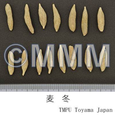 | 備考 | 『日本薬局方』,『中華人民共和国薬典』ともに原植物として,O. japonicus が規定される.その他中国産には O. ohwii,セッコウジャノヒゲ O. chekiangensis Kimura et Migo(浙江省の栽培品でスレンダーな根茎を持つことから O. japonicus と区別すべきであるという説がある.)が出廻る.韓国産はヤブラン属のコヤブラン Liriope spicata Lour. 及びヤブラン L. platyphylla Wang et Tang の肥大根である.このものは中国では「土麦門」と称しているが,品質はよくない. | ||||||