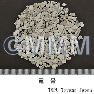 | 備考 | 中国では龍骨を商品上,「花龍骨(五花龍骨)」と「土龍骨」に大別している。 「花龍骨」は華東地区に主産し,表面淡灰白色~淡褐色を帯びた灰色を呈し,灰黒色,褐色,黄色あるいは青色などの斑紋,條紋または松葉紋様の花紋がみられ,質はやや硬いが破砕し易く,容易に崩れて粉末状となる。 「土龍骨」は華北,東北地区に主産し,表面に花紋がなく,断面は中空あるいは多孔質で,質は堅硬で破砕しにくいが,破砕すると小片状となる。「花龍骨」を上品とする。わが国に輸入されているものは主に「土龍骨」である。 | |||