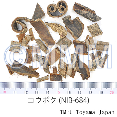 | 備考 | 『日本薬局方』では3種の樹皮が規定され,magnolol を 0.8%以上含むこととされる.『中華人民共和国薬典』では厚朴(Magnoliae Officinalis Cortex)として M. officinalis の樹皮(川朴,湖北厚朴などと称す)と M. officinalis var. biloba(温朴,温州厚朴)の樹皮が規定される.樹皮(幹皮,枝皮)の他,根皮も用いられる.日本市場では中国産の厚朴を唐厚朴と総称する.韓国産はホオノキの樹皮以外に,クスノキ科のタブノキ Machilus thunbergii Sieb. et Zucc. の樹皮を「厚朴(薄朴)」と称し代用にすることがあるが,気味が全く異なる. | |||||