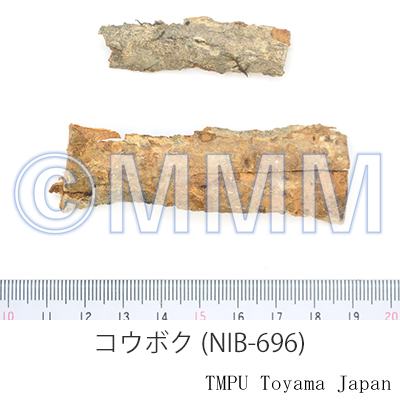 | 備考 | 『日本薬局方』では3種の樹皮が規定され,magnolol を 0.8%以上含むこととされる.『中華人民共和国薬典』では厚朴(Magnoliae Officinalis Cortex)として M. officinalis の樹皮(川朴,湖北厚朴などと称す)と M. officinalis var. biloba(温朴,温州厚朴)の樹皮が規定される.樹皮(幹皮,枝皮)の他,根皮も用いられる.日本市場では中国産の厚朴を唐厚朴と総称する.韓国産はホオノキの樹皮以外に,クスノキ科のタブノキ Machilus thunbergii Sieb. et Zucc. の樹皮を「厚朴(薄朴)」と称し代用にすることがあるが,気味が全く異なる. | |||||