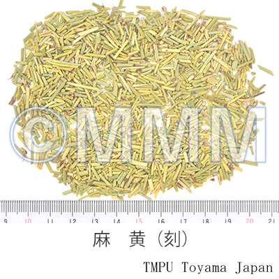 | 薬理作用 | 鎮咳,抗アレルギー作用(水,エタノールエキス),交感神経興奮(血圧上昇,気管支拡張,散瞳,発汗),中枢性鎮咳作用(ephedrine),抗炎症作用(pseudoephedrine). | |||||