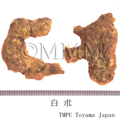 | 備考 | 日本及び韓国産は Atractylodes japonica の根茎の周皮を除いたもので,「三好白朮」,「玉白朮」,「嫩根白朮」などと称する.中国産白朮はすべて Atractylodes macrocephala を基源とし,産地及び加工法の違いにより「浙朮」,「天生朮」,「冬朮」,「野朮」など多様な呼称がある.『中華人民共和国薬典』に規定される白朮 (Atractylodis Macrocephalae Rhizoma, Largehead Atractylodes Rhizome) はこのものである.日本産白朮を「和白朮」,中国産白朮を「唐白朮」ともいう.2種ともに精油の主成分は atractylone である. 白朮とその同類生薬である蒼朮の薬効については,その健脾,燥湿を目的とするのは同じであるが,白朮は健脾(健胃)の力が比較的強く,蒼朮は燥湿(利水,利尿,発汗)の力が優るとされている.そのため,脾弱の虚証には白朮を用い,温盛の実証には蒼朮を多く用いる. | |||||