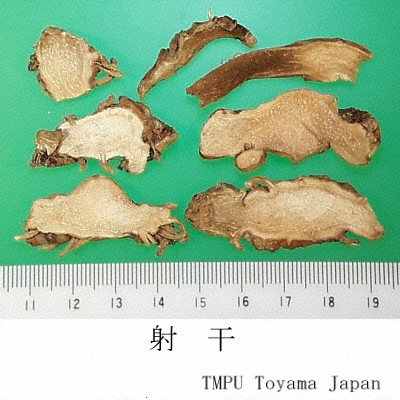 | 一般生薬名 | 射干, Shegan, Iridis Domesticae Rhizoma (Non-JPS2022), Belamcandae Rhizoma (CP2020), Blackberrylily Rhizome (CP2020, Non-JPS2022) | |||||