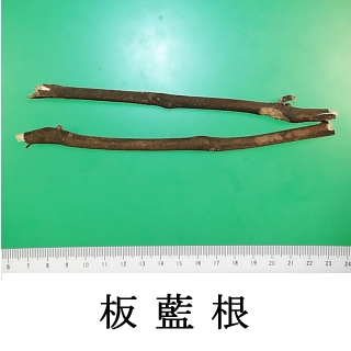 | 備考 | 華北で用いられるものは,アブラナ科/Brassicaceaeの Isatis tinctoria L. および タイセイ Isatis indigotica Fortune の根を乾燥したもの.陝西省に産するものの中には種の不明な Isatis属の根もある. 華南で用いられるものは,キツネノマゴ科/Acanthaceaeの リュウキュウアイ Strobilanthes cusia O.Kuntze の根および根茎を乾燥したもの.現在香港市場はほとんどこのもので,日本にもわずかに輸入される. | |||||