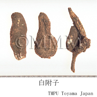 | 備考 | 『中華人民共和国薬典』では,附子は Aconitum carmichaeli の子根の加工品とされる.加圧・加熱処理した「加工附子」が各種製剤に用いられている.トリカブトアルカロイドは毒性が強く,減毒のための種々の調製法(修治法)があり,その違いにより「塩附子」,「炮附子」,「黒附片」,「白附片」などと呼ばれる. - 中国産塩附子 (Aconitum carmichaeliの子根): 塩水とにがり水の混液につけた半乾燥品. - 炮附子: 塩附子の外皮を剥ぎ2縦割して乾燥したもの. - 黒附片, 熟附片:にがり水に浸けた後縦切りにし,調色剤で染色,蒸してから乾燥したもの. - 白附片:黒附片に準ずるが,外皮をはぎ,最終工程で硫黄により白く薫蒸したもの. 日本産白河附子 (Aconitum japonicumの塊根): 塩水に浸したのち石灰をまぶして乾燥したもの. 修治法の違いにより、次の3種類のブシがある。 ブシ1:高圧蒸気処理により加工する。 ブシ2:食塩、岩塩又は塩化カルシウムの水溶液に浸せきした後、加熱又は高圧蒸気処理により加工する。 ブシ3:食塩の水溶液に浸せきした後、水酸化カルシウムを塗布することにより加工する。 | ||||||