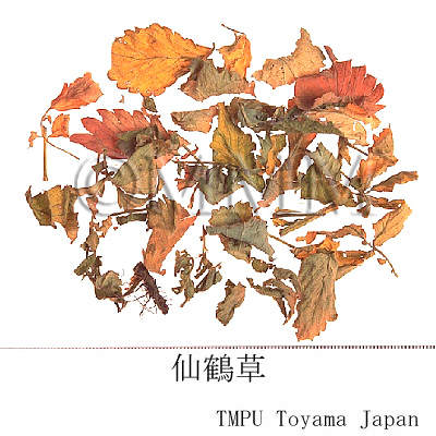 薬理作用仙鶴草の浸剤は血液凝固促進作用があり,蛙腿の灌流実験では周囲血管収縮作用がある.マウスに agrimonol を静脈注射すると出血時間を45%短縮する.家兎に対しては血液凝固時間を大幅に短縮し,血小板数を増加する.イヌの大腿動脈の出血実験では,局部に仙鶴草の粉末を応用し,圧迫を加えると,一定の止血効果がある.しかしこれらの実験に対しては反対の報告もある.Agrimonol を11名の血友病患者に投与し,3例に対して血漿,血液凝固活性酵素の生成に比較的良好な効果がみられた.仙鶴草のアルコール浸出物は麻酔動物に対して血圧上昇作用があるが,これは周囲血管収縮によるものであろう.水エタノール抽出物は家兎の血圧を降下せしめ,家兎耳殼および蛙後肢の血管灌流実験では,低濃度で収縮,高濃度で拡張作用があり,蛙の摘出心臓を抑制する.Agrimonol は家兎の摘出心臓に対して1:100000~1:5000濃度でその収縮幅を増加し,増加程度は濃度と比例する.仙鶴草の水および水・アルコール抽出物は,カラシ油およびブドウ球菌による家兎結膜炎に対し抗炎症作用がある.この消炎効果はタンニン成分 phlobaphene の収斂作用によるものと思われる.その他抗菌,抗寄生虫作用も報告されている.近年ヒト子宮頸ガン組織由来のJJC-26培養細胞を用いて生体外実験を行い,仙鶴草の熱時水抽出エキス500γ/mlを培養ガン細胞と正常細胞に与え比較したところ,ガン細胞は100%増殖抑制,正常細胞は2倍に増殖するという興味ある実験データが報告されている.