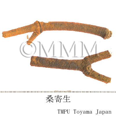 | 備考 | 本品はヤドリギ Viscum album L. var. coloratum (Komar.) Ohwi [=V. coloratum (Komar.) Nakai, V. album L. subsp. coloratum Komar.] および アカミヤドリギ V. album L. var. coloratum Ohwi forma rubro-aurantiacum (Makino) Ohwi の葉をつけた茎を乾燥したもの.市場では桑寄生,槲寄生,柳寄生,北寄生,黄寄生と呼ぶ. また Loranthus parasiticus (L.) Merr. (= Scurrula parasitica L.) の帯葉茎 (広寄生), オオバヤドリギ Loranthus yadoriki Sieb. ex Maxim. [= Taxillus yadoriki (Sieb.) Danser] の帯葉茎 (四川省で桑寄生,寄生苞,寄生子,柿寄生と称する) なども「桑寄生」として市販される.一般に北寄生 (東北, 華北) と広寄生 (華南) が多い.台湾市場の槲寄生はオオバヤドリギ Loranthus yadoriki, 広寄生は Viscum articulatum Burm. を基源としている. | |||||