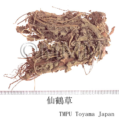 | 薬理作用 | 仙鶴草の浸剤は血液凝固促進作用があり,蛙腿の灌流実験では周囲血管収縮作用がある.マウスに agrimonol を静脈注射すると出血時間を45%短縮する.家兎に対しては血液凝固時間を大幅に短縮し,血小板数を増加する.イヌの大腿動脈の出血実験では,局部に仙鶴草の粉末を応用し,圧迫を加えると,一定の止血効果がある.しかしこれらの実験に対しては反対の報告もある.Agrimonol を11名の血友病患者に投与し,3例に対して血漿,血液凝固活性酵素の生成に比較的良好な効果がみられた.仙鶴草のアルコール浸出物は麻酔動物に対して血圧上昇作用があるが,これは周囲血管収縮によるものであろう.水エタノール抽出物は家兎の血圧を降下せしめ,家兎耳殼および蛙後肢の血管灌流実験では,低濃度で収縮,高濃度で拡張作用があり,蛙の摘出心臓を抑制する.Agrimonol は家兎の摘出心臓に対して1:100000~1:5000濃度でその収縮幅を増加し,増加程度は濃度と比例する.仙鶴草の水および水・アルコール抽出物は,カラシ油およびブドウ球菌による家兎結膜炎に対し抗炎症作用がある.この消炎効果はタンニン成分 phlobaphene の収斂作用によるものと思われる.その他抗菌,抗寄生虫作用も報告されている.近年ヒト子宮頸ガン組織由来のJJC-26培養細胞を用いて生体外実験を行い,仙鶴草の熱時水抽出エキス500γ/mlを培養ガン細胞と正常細胞に与え比較したところ,ガン細胞は100%増殖抑制,正常細胞は2倍に増殖するという興味ある実験データが報告されている. | |||||