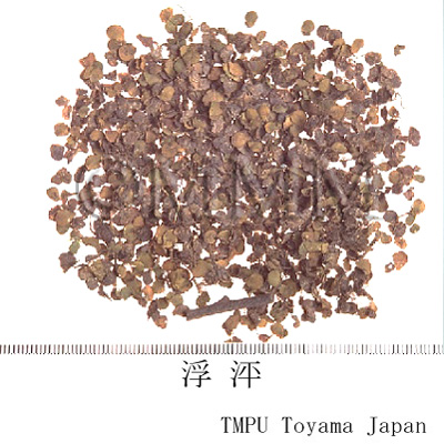 備考香港市場の広東,広西省産の大型の「浮萍」はサトイモ科のボタンウキクサ Pistia stratiotes L. の全草を乾燥したもの.浮萍草とも称す.