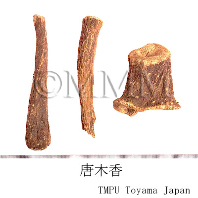 | 備考 | キク科/Compositae の Saussurea lappa Clarke (= Aucklandia lappa) の根に由来する木香が正品で,古代には「青木香」と称した.現在の青木香は,ウマノスズクサ科/Aristolochiaceae の ウマノスズクサ Aristolochia debilis Sieb. et Zucc. および マルバウマノスズクサ Aristolochia contorta Bunge の根である. 川木香はキク科の Vladimiria souliei (Franch.) Ling の根で,通常根頭部を焼いて調製する.かつてこれを Inula racemosa Hook.f.(蔵木香)に充てたことがあったが誤りである. 土木香はキク科のオオグルマ Inula helenium L. の根である.その他中国市場の「越西木香」は Vladimiria denticulata Ling の根である. | ||||||
