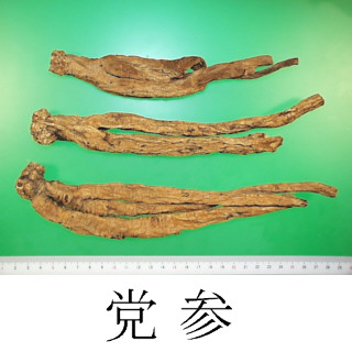 | 備考 | 『中華人民共和国薬典』収載品の C. pilosula, C. pilosula var. modesta, C. tangshen の他,四川省で C. subglobosa W.W.Sm., 四川,貴州,雲南省で C. tubulosa Kom., 四川,西蔵自治区で C. nervosa Nannf., C. canescens Nannf., 新彊ウイグル自治区で C. clematidea C.B.Clarke が使用される. 近年中国では「人参」の代用品として「党参」の需要が多い.「党参」の名前は清代の『本草従新』に初見するが,それ以来「人参」と「党参」の薬能の異同については二説がある.一つは「党参は清肺の功がある.ただし,医者はみだりに人参の代用品として党参を用いてかえって病気を悪化させている」というもの,一つは「党参は薬効が人参と同じである」とするものである.薬効の同等性については問題がありそうである. | ||||||
