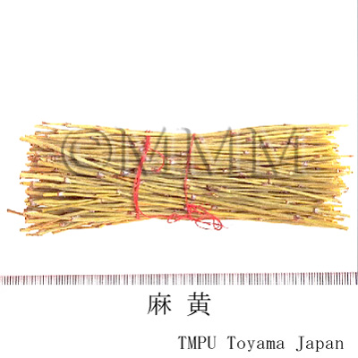 | 薬理作用 | 鎮咳,抗アレルギー作用(水,エタノールエキス),交感神経興奮(血圧上昇,気管支拡張,散瞳,発汗),中枢性鎮咳作用(ephedrine),抗炎症作用(pseudoephedrine). | |||||