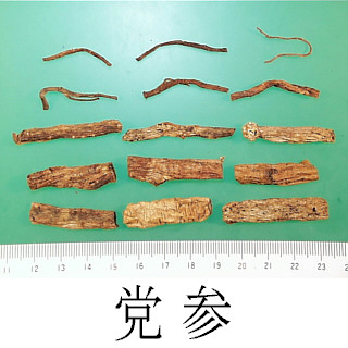 | 備考 | 『中華人民共和国薬典』収載品の C. pilosula, C. pilosula var. modesta, C. tangshen の他,四川省で C. subglobosa W.W.Sm., 四川,貴州,雲南省で C. tubulosa Kom., 四川,西蔵自治区で C. nervosa Nannf., C. canescens Nannf., 新彊ウイグル自治区で C. clematidea C.B.Clarke が使用される. 近年中国では「人参」の代用品として「党参」の需要が多い.「党参」の名前は清代の『本草従新』に初見するが,それ以来「人参」と「党参」の薬能の異同については二説がある.一つは「党参は清肺の功がある.ただし,医者はみだりに人参の代用品として党参を用いてかえって病気を悪化させている」というもの,一つは「党参は薬効が人参と同じである」とするものである.薬効の同等性については問題がありそうである. | ||||||