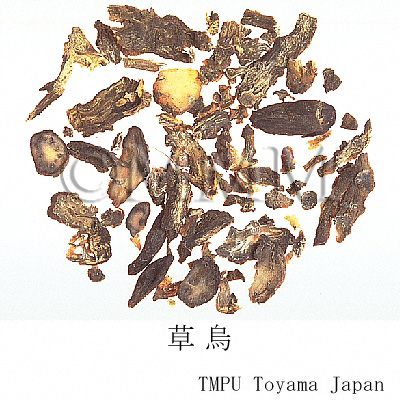 | 備考 | - 野生の Aconitum 属の塊根は「草烏頭」, 「草烏」, 「烏薬」, 「金牛七」, 「大草烏」, 「小黒牛」, 「血烏」, 「黄草烏」, 「藤草烏」, 「蔓烏薬」,「火焰子」, 「鉄棒鎚」など産地,種類によって名称が異なる. - 中国産草烏頭など:A. kusnezoffii(黒竜江), A. artemisaefolium Bar. et Skv.(遼寧), A. paniculigerum Nakai, A. sczukini Turcz.(以上, 東北地方), A. taipeicum Hand.-Mazz.(陝西), A. karakolicum Rap., A. soongaricum Stapf(以上, 新疆), A. sungpanense Hand.-Mazz.(陝西, 甘粛, 四川), A. hemsleyanum Pritz.(四川, 湖北, 湖南, 陝西), A. stylosum Stapf, A. transsectum Diels, A. delavayi Franch.(以上, 雲南) など多くのAconitum属植物の塊根. - 韓国産草烏頭:ミツバトリカブトA. triphyllum Nakai など数種のAconitum属植物の塊根. - 日本産草烏頭:オクトリカブトA. japonicum Thunb. の塊根. -『中華人民共和国薬典』には「川烏」(A. carmichaeli の母根,6月下旬~8月上旬採取)と「草烏」(A. kusnezoffii の塊根,秋季採取)が収載される.草烏の方が毒性及び効果が強い.烏頭は附子に比べて去風,鎮痛の効が勝り,強心,去寒の効は劣る. | ||||||